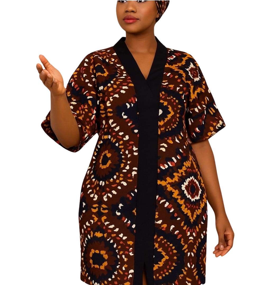 Be the first to review “Black and Brown Knee-Length Dress with Scarf”