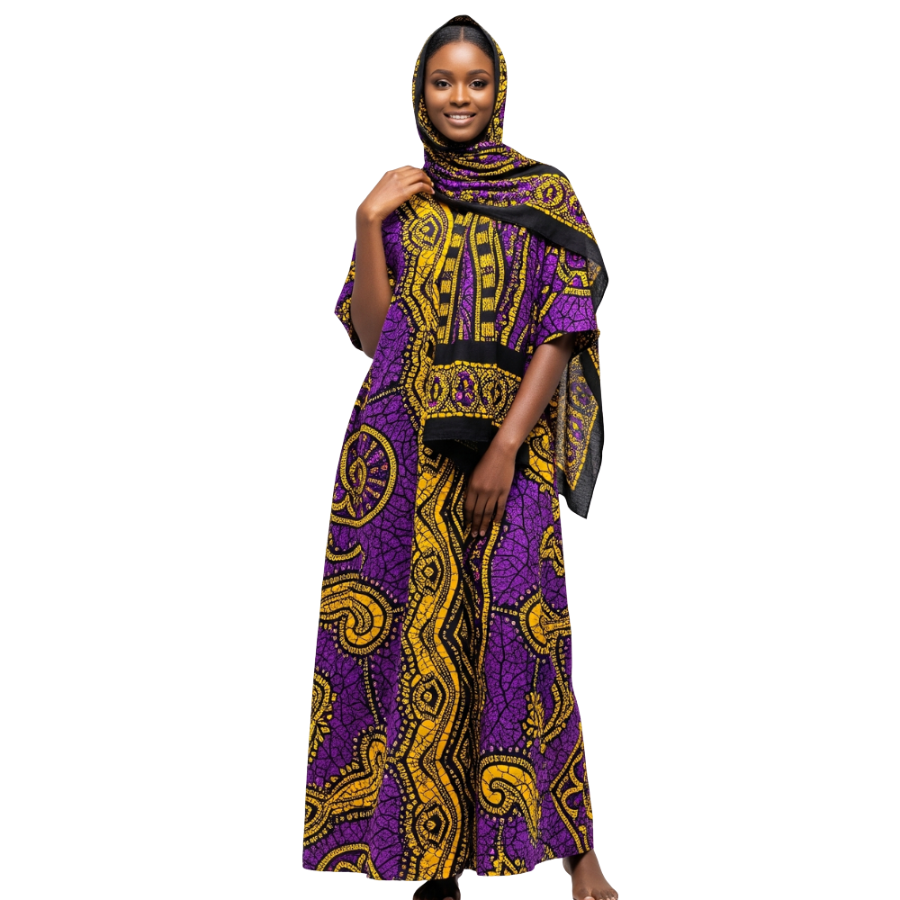 Be the first to review “Purple and Yellow Ankle-Length Dress with Scarf”